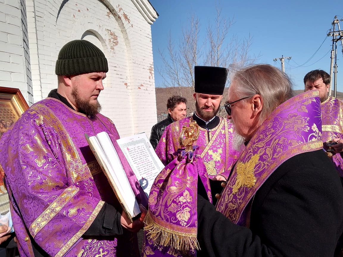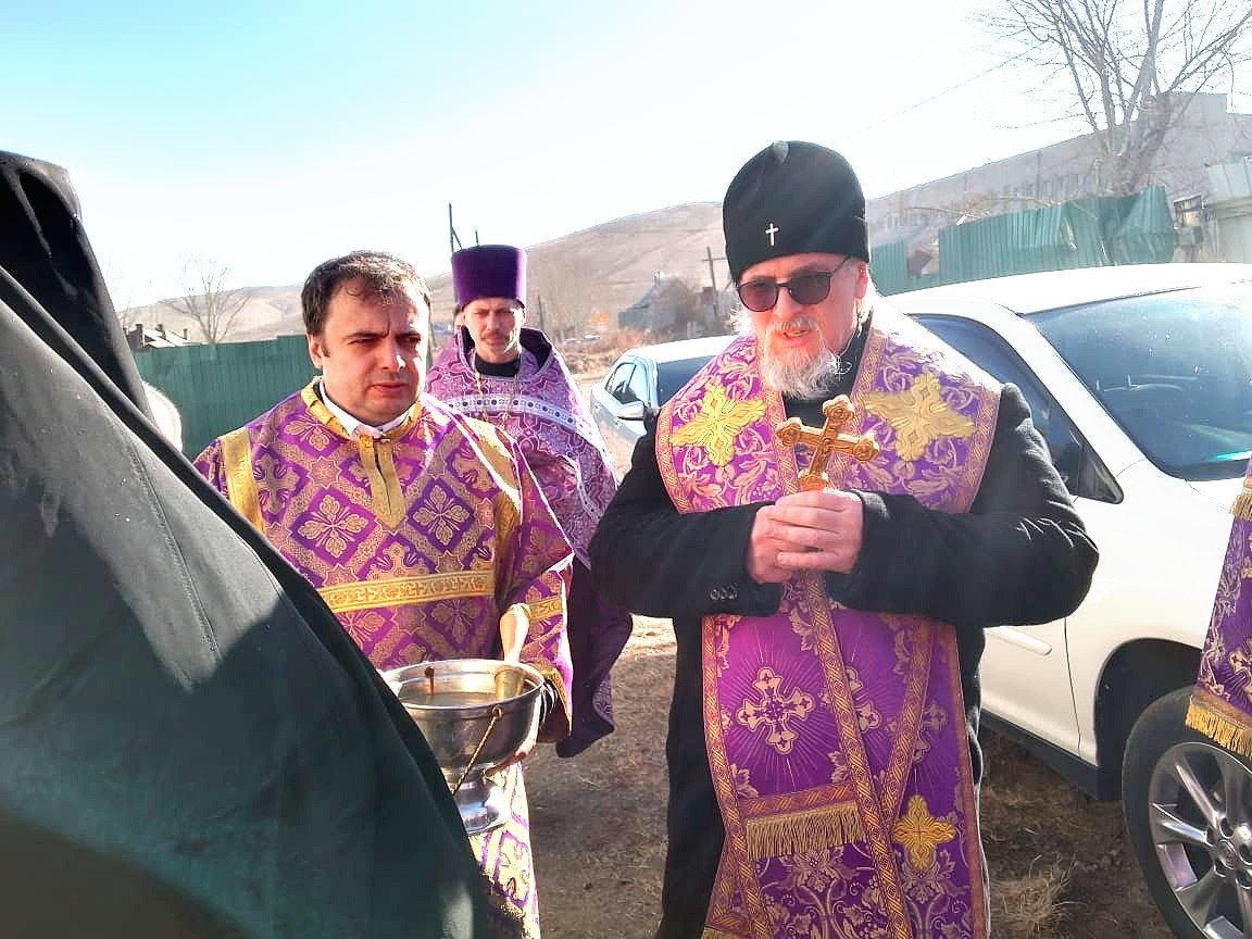 Его Высокопреосвященству сослужили: секретарь Нерчинской епархии игумен Симеон (Зимняков) и клирик храма преподобного Сергия Радонежского г. Борзя протоиерей Ростислав Зинченко.